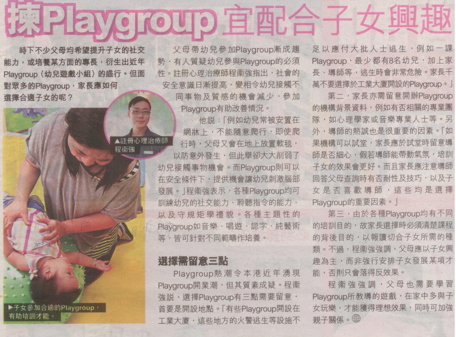 揀playgroup宜配合子女興趣